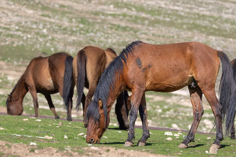 Zaman içerisinde vahşi doğaya uyum sağlayan bu atlar, artık insan müdahalesi olmadan yaşamlarını sürdürüyor.