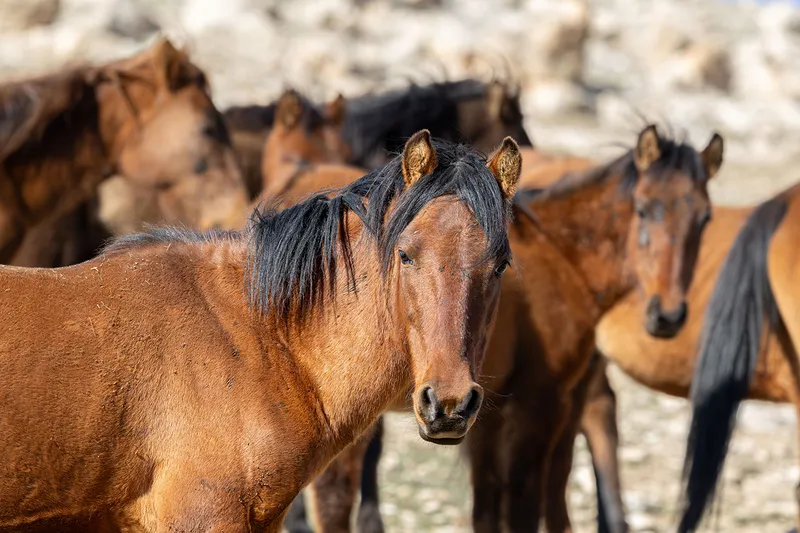Sert iklim koşullarına dayanıklılık gösteren yılkı atları, özellikle engebeli ve geniş bozkır alanlarda sürüler halinde hareket ediyor.