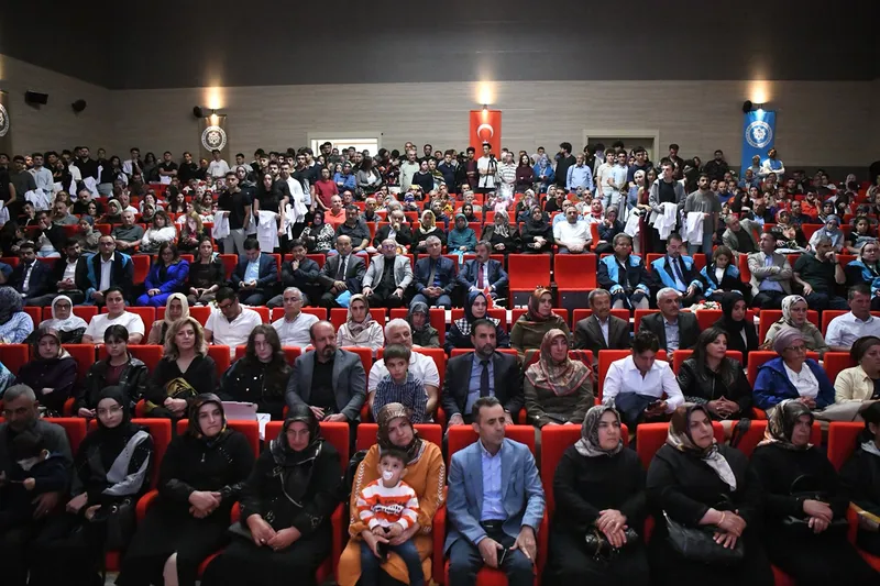 Gazze'deki sağlık çalışanlarının fedakârlığını hatırlatan Özkan, Gazze'deki meslektaşlarımızın gösterdiği kararlılık ve fedakârlık hepimiz için ilham kaynağıdır. Savaşın ve baskının gölgesinde bile insan hayatını önceleyen bu kahramanlar, canları pahasına hastaları kurtarmak için geceyi gündüze katıyor. Hastaneyi terk etmeyip ekip çalışmasını en yüksek düzeyde sürdürerek tıbbi müdahalelerin sürekliliğini sağlıyorlar. Onlar, savaşın ve baskının gölgesinde bile umut ışığını yakmayı başaran, mesleğin en insancıl yönünü hayata geçiren kişiler olarak karşımızdalar. Bu yüksek fedakarlık, tıbbın evrensel amacını en yalın haliyle hatırlatır. Hastayı yalnız bırakmamak, acıyı hafifletmek ve umudu canlı tutmak. Böyle insanlar, bize mesleğin yalnızca teknik becerilerden ibaret olmadığını; dayanışma, vicdan ve insan sevgisiyle yürünen bir yol olduğunu gösterir. Sizler de akademik bilgiyle bu insani yönetimi güçlendirecek, gerektiğinde zorluklar karşısında dimdik ayakta kalacak olanlar olacaksınız." ifadelerini kullandı.