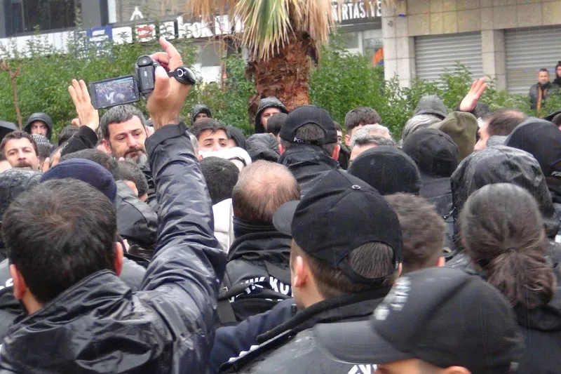 Basın açıklamasının tamamlanmasının ardından bazı kişiler, sloganlar eşliğinde izinsiz yürüyüş yapmak istedi. Polis, grubu “dağılın” uyarısıyla uyardı. Uyarılara rağmen yürüyüşe devam eden gruba müdahale edildi ve arbede yaşandı. Olaylara karıştığı belirlenen 2 kişi gözaltına alındı.