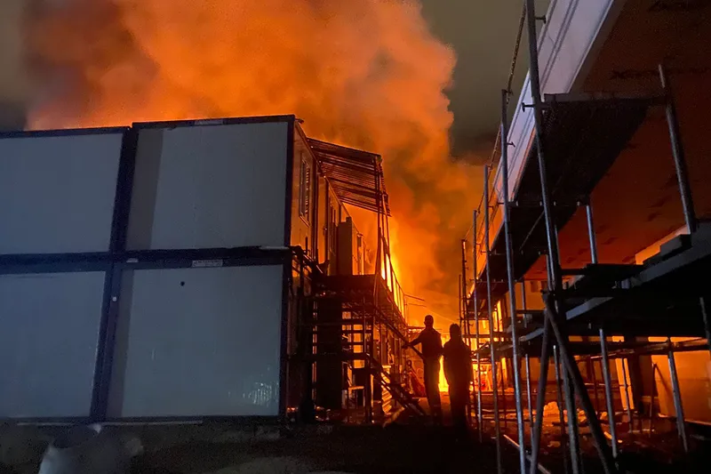 Edinilen bilgilere göre, işçilerin kaldığı konteynerlerde, henüz belirlenemeyen bir nedenle yangın çıktı.
