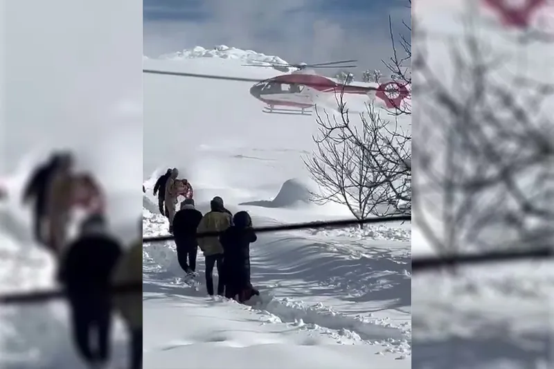 Yoğun kar yağışı nedeniyle karayoluyla ulaşılamayan hasta için ambulans helikopter havalandı.