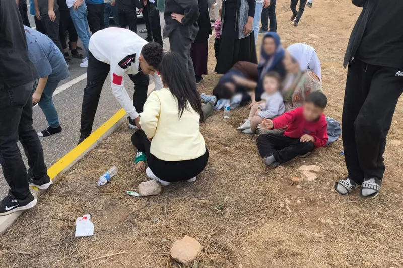 Çarpışmanın şiddetiyle aracın ön koltuğundaki sıkışan iki kadın başta olmak üzere, kamyonetin kasasında bulunan çok sayıda kadın ve çocuk da savrularak yaralandı.