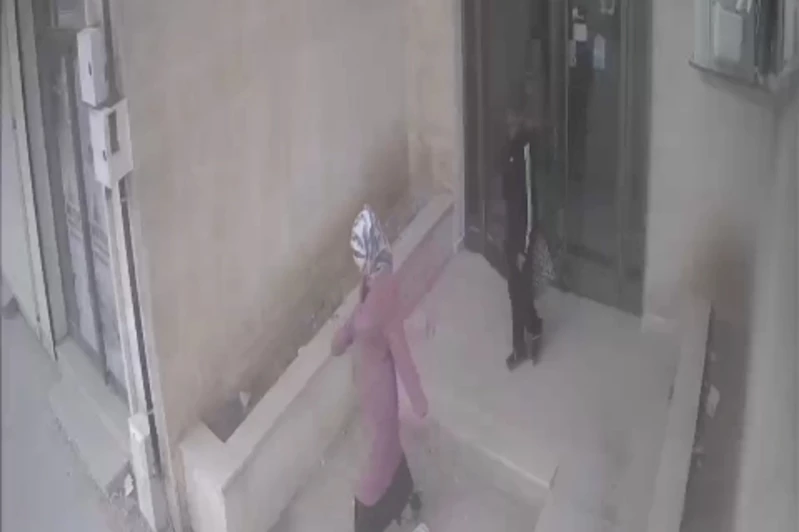 Güvenlik kamerasına yansıyan hırsızlık anı görüntülerinde, başları ve yüzleri eşarpla kapalı olan iki kadının apartmana giriş ve çıkış anları yer aldı.