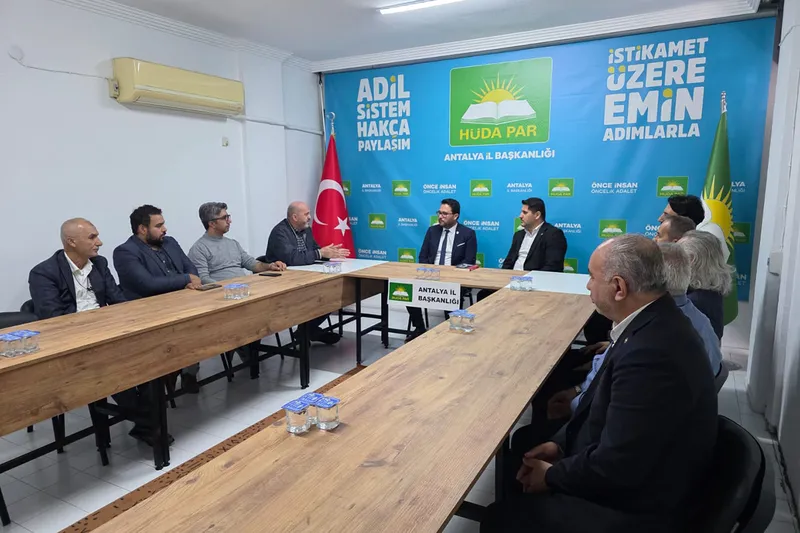 Heyet, HÜDA PAR Antalya İl Başkanı Muhammet Şerif Durmaz ve yönetim kurulu üyeleri tarafından karşılandı.