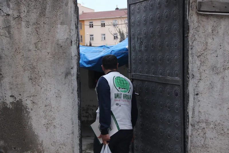 Dernek, ilçede mahalle komisyonlarınca tespit edilen ihtiyaç sahibi ailelere ulaştırılmak üzere “Ramazan Umut Olsun” sloganıyla hazırlanan gıda paketlerini dağıtıyor.