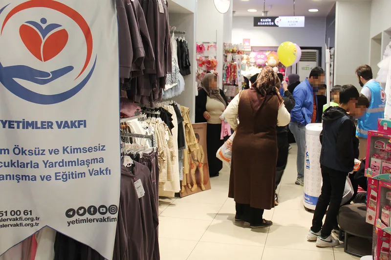 Giyim desteğinden yararlanan yetimler, aileleriyle birlikte bir giyim mağazasına giderek istedikleri kıyafet ve ayakkabıları seçme imkânı buldu.