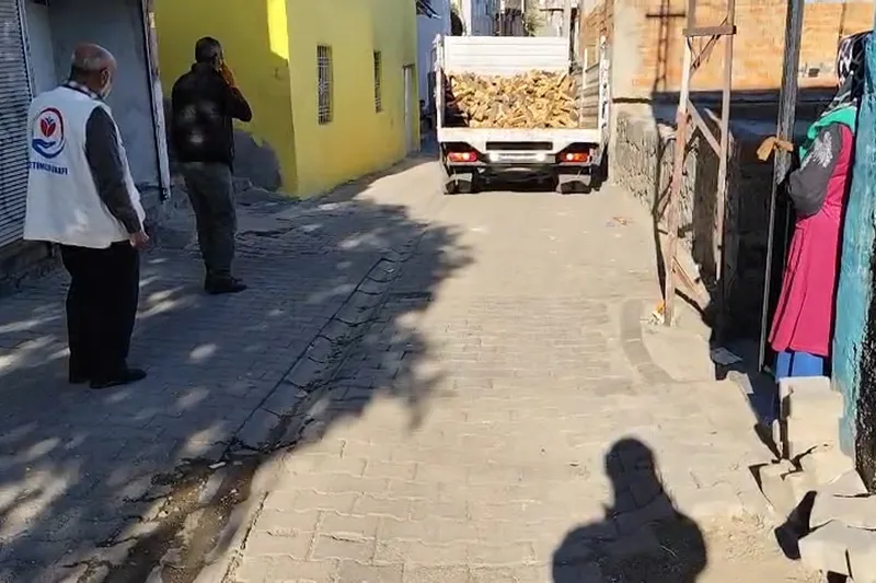 Tespit edilen sobalı hanelere yakacak desteğinde bulunan Yetimler Vakfı, yüklediği kırılmış odunları hanelere teslim etti.
