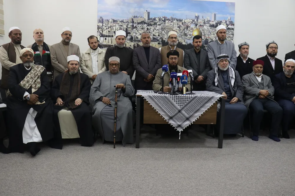 Aksa Emanetçileri Derneği öncülüğünde bir araya gelen alimler, siyonist işgal güçlerinin Mescid-i Aksa'yı günlerdir kapalı tutmasına ve ibadetlerin engellenmesine tepki göstermek amacıyla basın açıklaması düzenledi.