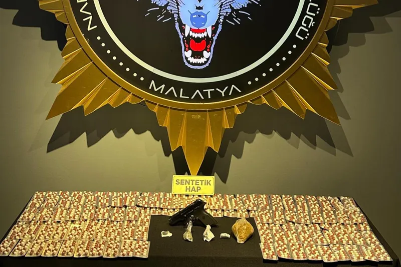 Yapılan çalışmalar neticesinde 2 ikamet ve 5 şahsın üzerinde gerçekleştirilen aramalarda 2 bin 227 adet sentetik ecza maddesi, 101 gram sentetik kannabinoid maddesi, 1,5 gram metamfetamin maddesi, 1 gram esrar maddesi ile 1 adet ruhsatsız tabanca ele geçirildi.