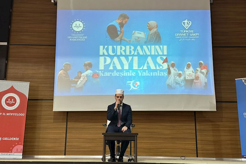 Diyanet İşleri Başkanlığı Merkez Vaizi Ahmet Dilek ise konuşmasına “Öğüt ver; çünkü öğüt müminlere fayda verir” (Zâriyât, 55) ayetini okuyarak başladı. Vekâletle kurban organizasyonunun 1994 yılında başlatıldığını belirten Dilek, “2024 yılında 747.052 hisse ile 34 milyondan fazla kişiye ulaşıldı. Bu organizasyon, dünyanın en büyük hayri faaliyetlerinden biridir,” dedi.