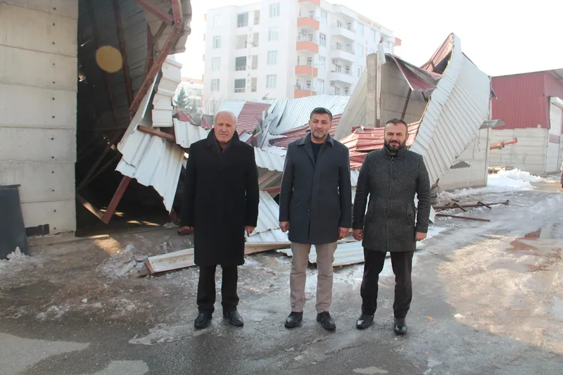 Günlerdir aralıklarla etkisini sürdüren yoğun kar yağışı sonrası, pazarda bulunan ambar ve iş yerlerinin çatıları kar yüküne dayanamayarak çöktü. Çökmeler sonucunda bazı araçlar enkaz altında kalırken, tonlarca hububat zarar gördü.